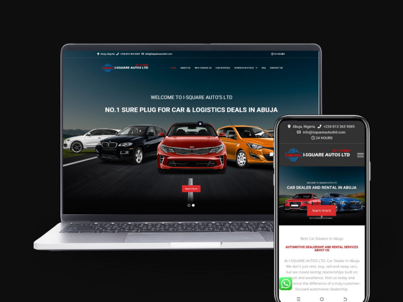 The I-SQUARE AUTOS LTD website was designed to give the Abuja-based car dealership a professional online presence where clients can easily buy, sell, rent, or swap vehicles from any location.